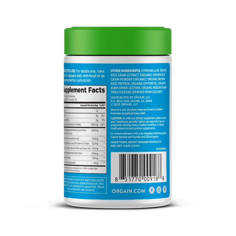 Orgain StressLess is a yoga mat for your mind. StressLess supports feelings of calm & well-being. Packed with calming GABA & adaptogens Ashwagandha & rhodiola, Chamomile, Lemon Balm & essential nutrient Magnesium.